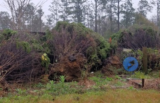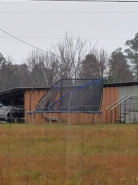 Several small trees were uprooted, skirting was blown off a mobile home, a privacy fence was downed and small items were tossed about. A cow was also out, walking down the roadway, possibly due to fence damage.