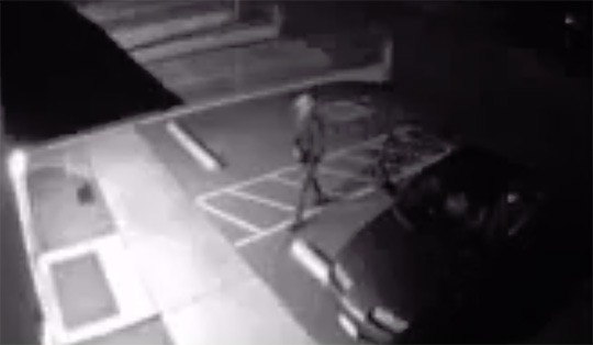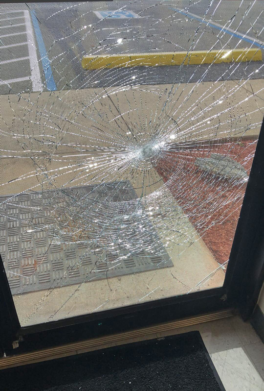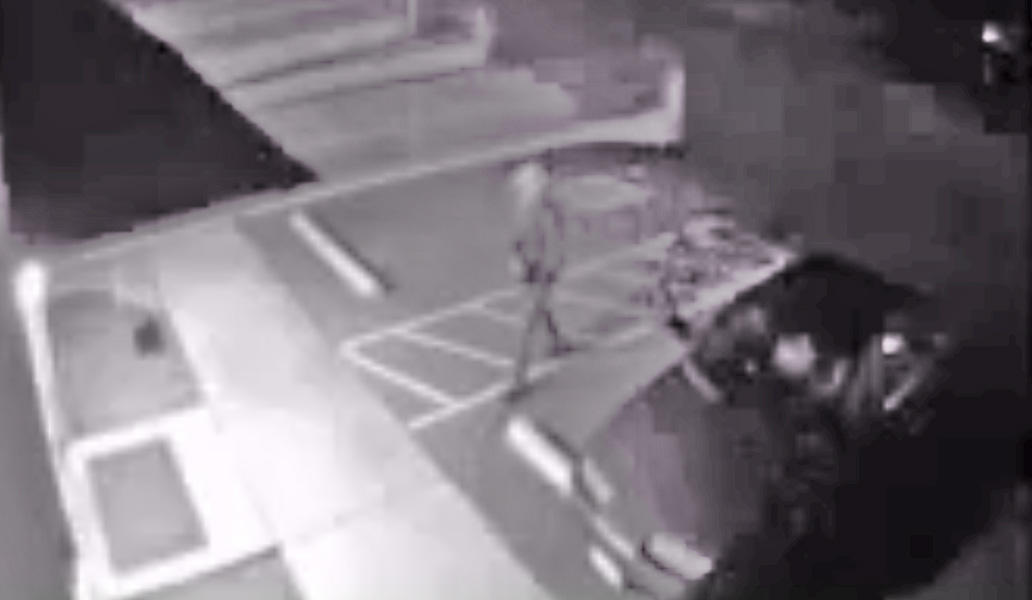The suspect is seen on security footage at 10:36 p.m. He exits the vehicle unsuccessfully attempts to break the glass out of door. A manager said this was the third time someone had busted their door glass in the past month. No one has tampered with or stolen anything.
