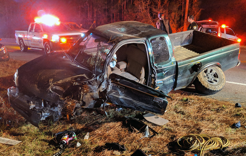 The driver of a pickup truck left the roadway and struck a tree about 10:45 p.m. one mile north of Hendricks Lane. The driver was airlifted by LifeFlight helicopter to an area hospital.