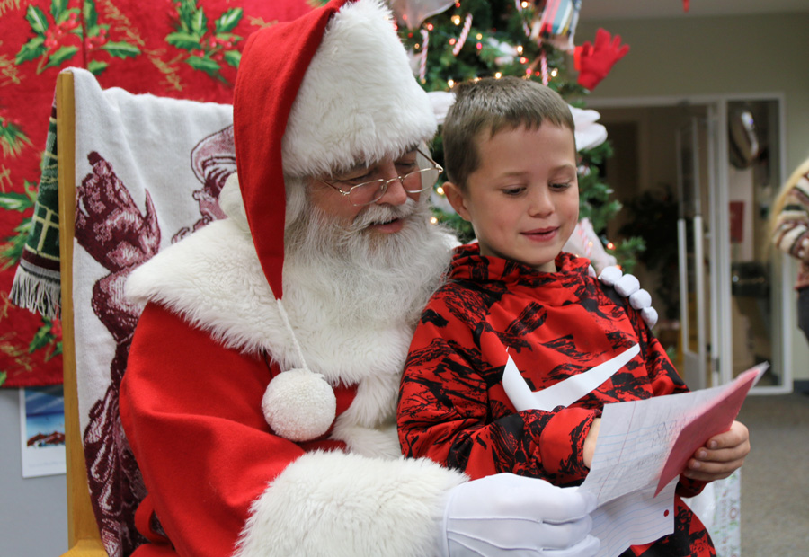 One young boy asked for a watch and a kitty cat. After Santa reminded him to be good, Santa handed him a treat bag. A big smile came over his face as he went back to his parent.