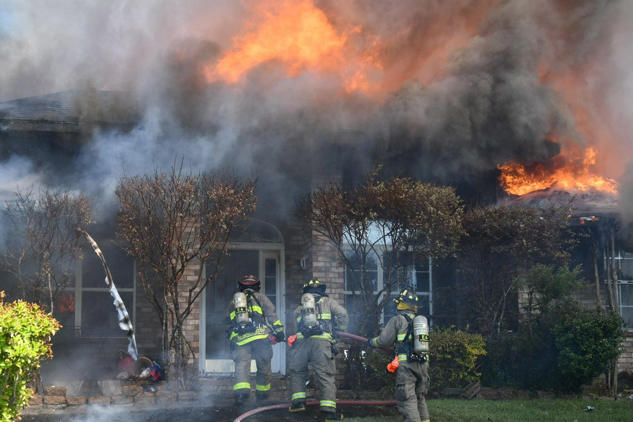The brick home on the 1500 block of Twins Pine Circle off Muscogee Road was fully involved when firefighters arrived on scene about 11:40 a.m. There were no injuries reported.