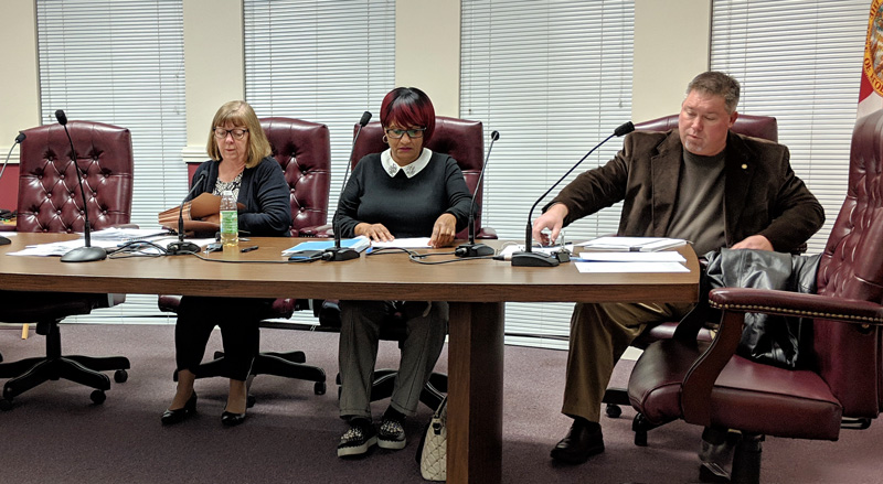Pictured top: Century council members (L-R) Ann Brooks, Sandra McMurray Jackson and Ben Boutwell as an unadvertised early meeting is canceled Monday night. NorthEscambia.com photos, click to enlarge.
