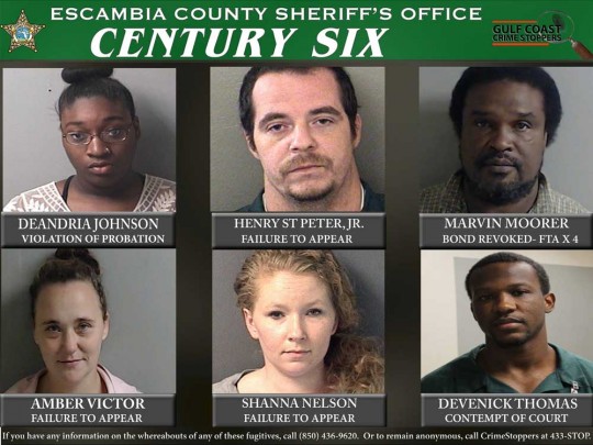 The Escambia County Sheriff’s Office has added Deandria Johnson, wanted for violation of probation, Marvin Moorer, wanted for failure to appear and Amber Victor, wanted for failure to appear, to the latest “Century Six.”