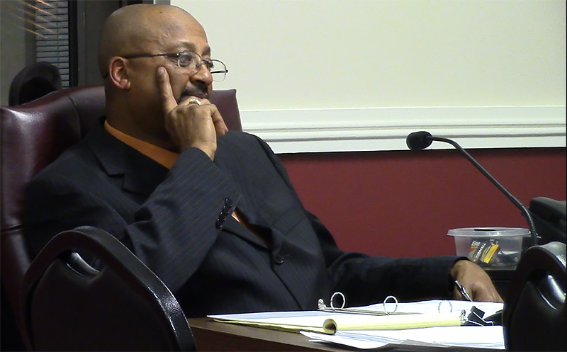 Pictured: Century Mayor Henry Hawkins listens to Century Council President Ann Brooks. NorthEscambia.com photo, click to enlarge.