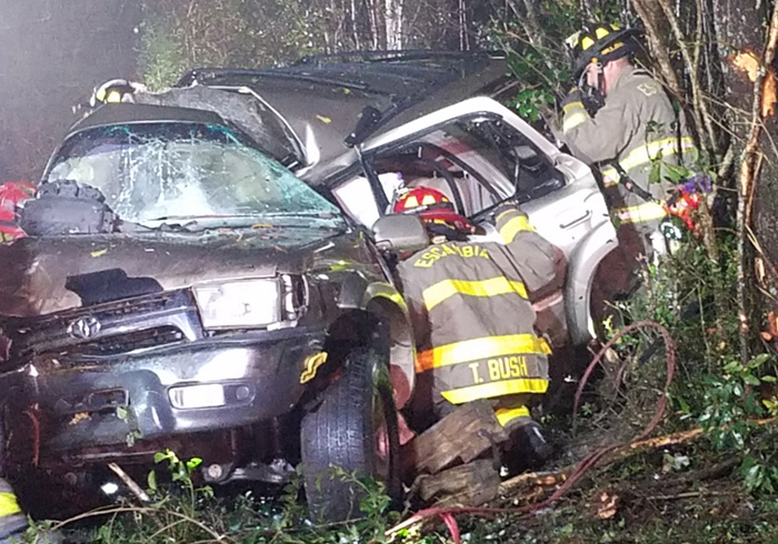 Firefighters used the Jaws of Life to extricate the woman from her vehicle after she collided with several trees about 10:40 p.m.. She was transported to a Pensacola hospital by Escambia County EMS.