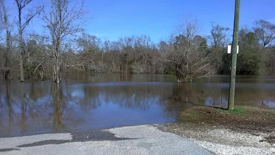 A flood warning continues for the Escambia River. The river is expected to fall below flood stage by early Thursday morning. Pictured: Flooding of the Escambia River at the Molino Boat Ramp. Reader photos by Jason Hammond for NorthEscambia.com, click to enlarge.