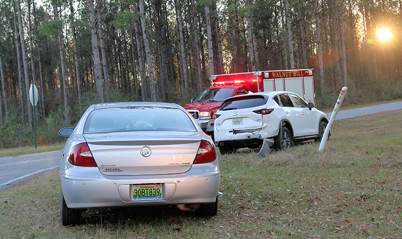 There were no injuries in a two vehicle crash about 4:15 p.m. Thursday afternoon on Highway 97 at Howell Road in Walnut Hill. The wreck did shut down Highway 97 for a brief period of time.