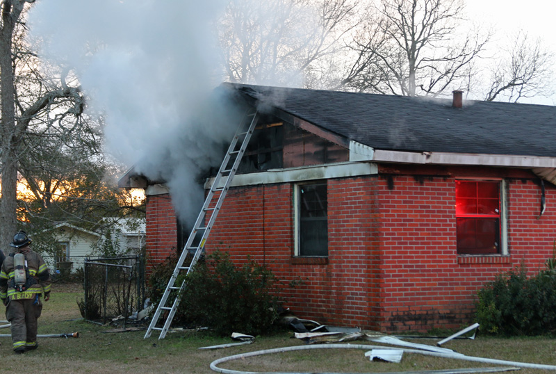 Fire was rolling from the attic and windows of the brick home when firefighters arrived on scene. Atmore Fire Chief Ronald Peebles said it appeared the fire started with a space heater in a bedroom. The home was heavily damaged.