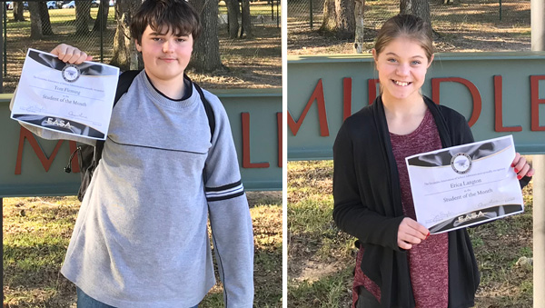 Ransom Middle School has named their Students of the Month for January. They are Tom Fleming, sixth grade, and Erica Langton, eight grade. Photos for NorthEscambia.com, click to enlarge.