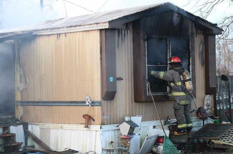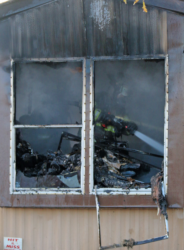 “There was so much junk we could not access a back bedroom and had to cut through an outside wall to get to it,” the fire chief said. He expected it would take hours to remove the junk from the trailer to fully extinguish the smoldering fire and being their investigation into the cause.