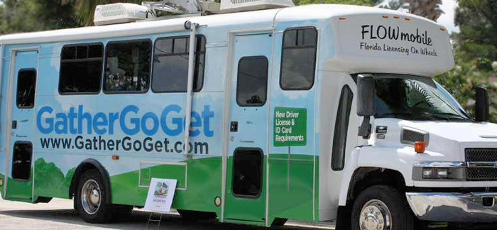 FLOW is a stand-alone mobile office with technology to provide most motorists’ needs. The mobile unit provides a convenient method to renew a driver’s license, obtain a replacement driver’s license, conversion or reciprocation of out-of-state license, change a name or address on a current driver’s license or identification card, and get a first-time identification card. In addition to licensing services, the mobile unit also provides an opportunity to renew or replace a vehicle registration and apply, renew or replace disabled parking placards. Written and driving tests are not available from the FLOW unit.