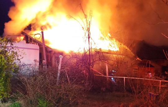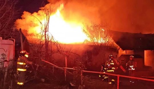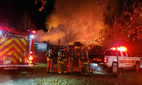 The 12:30 a.m. fire in the 3500 block of Crabtree Church Road left three people, two adults and one adolescent, without a home. They are being assisted by the American Red Cross. Several dogs also escaped the blaze.