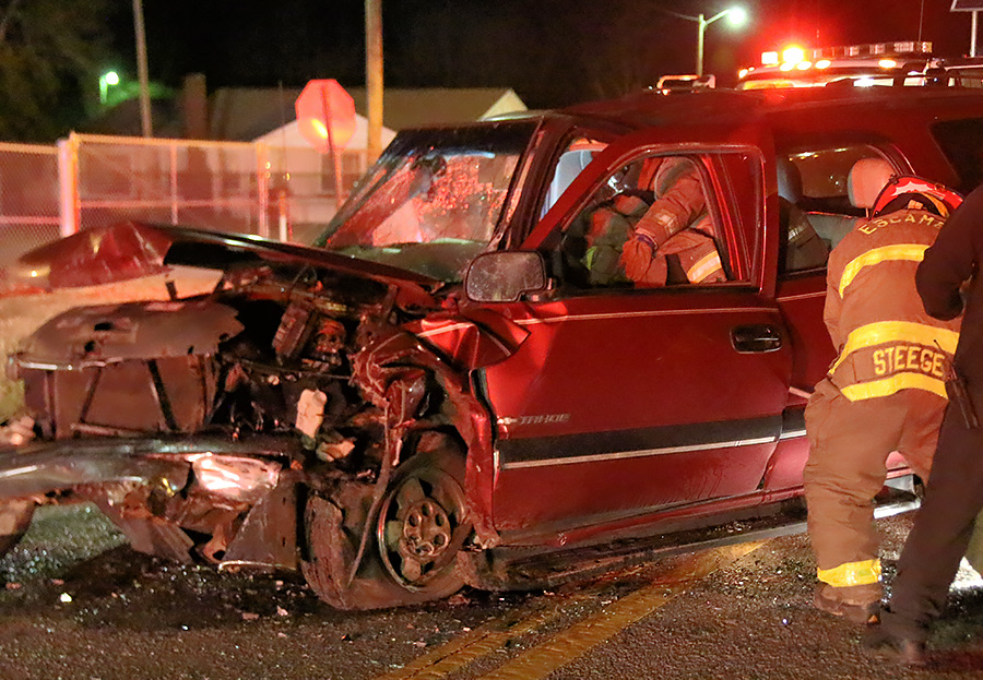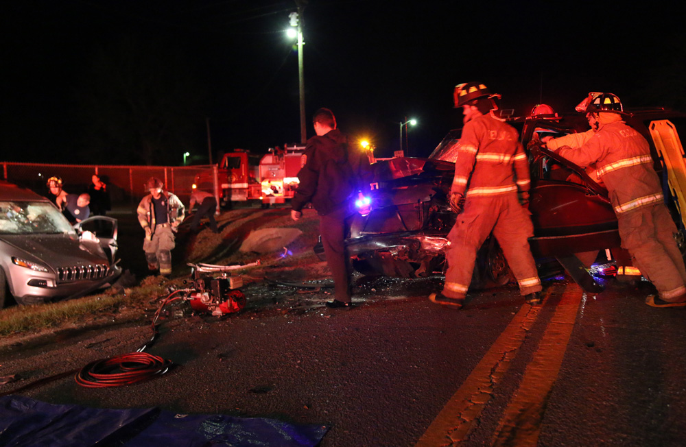 Both were trapped in their vehicles following the wreck about 7:45 p.m.