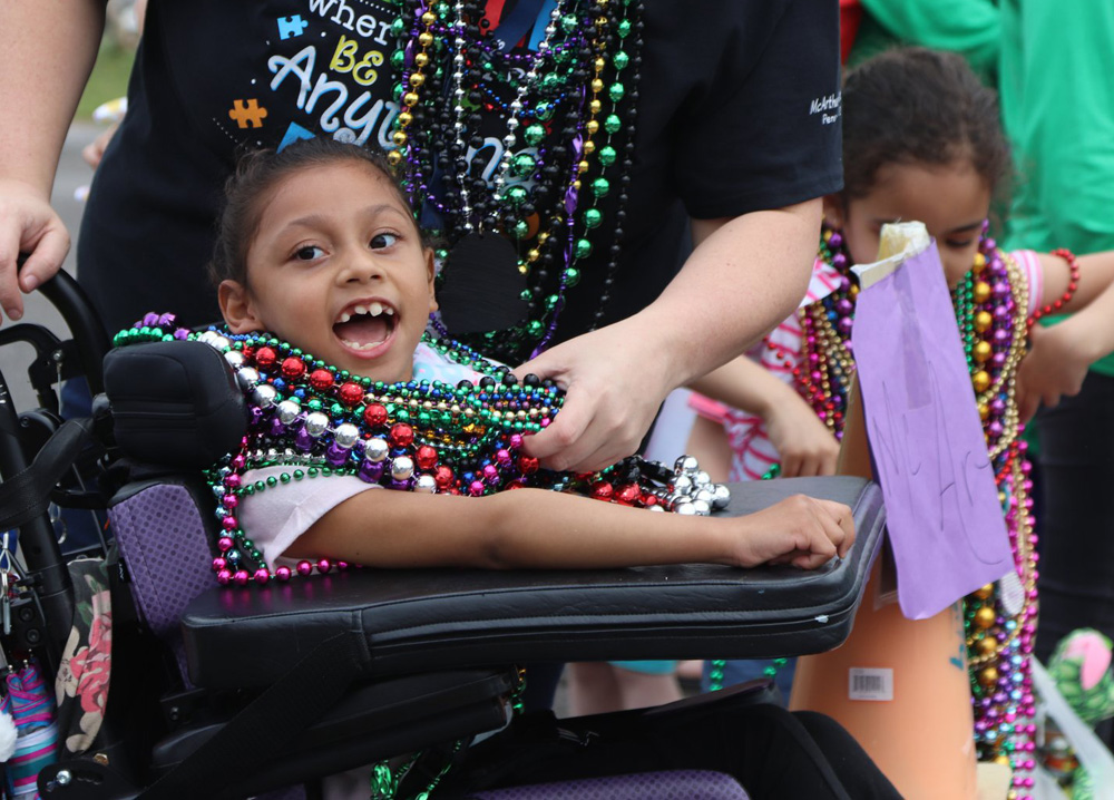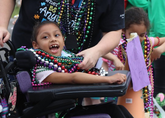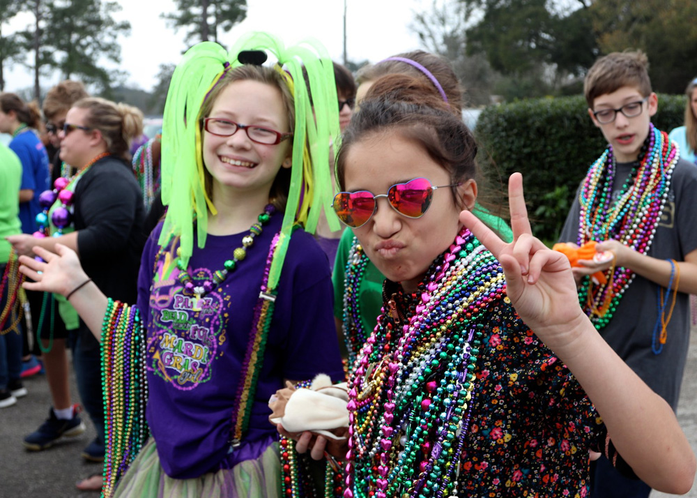 With plenty of beads, Moon Pies, stuffed animals and smiles, the parade rolled through the school parking lot for students that might not otherwise be able to attend a regular Mardi Gras parade.