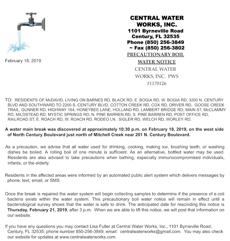 Central Water Works Issues Boil Water Notice For About 365 Customers