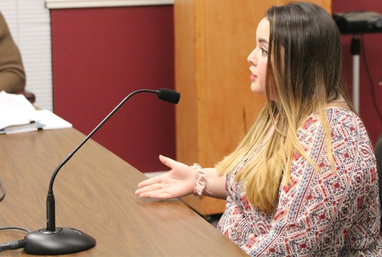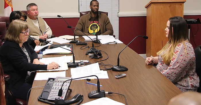 Pictured: The Century Town Council interviews town employee Toni Simmons before promoting her to billing clerk during their Monday night meeting. NorthEscambia.com photos, click to enlarge.