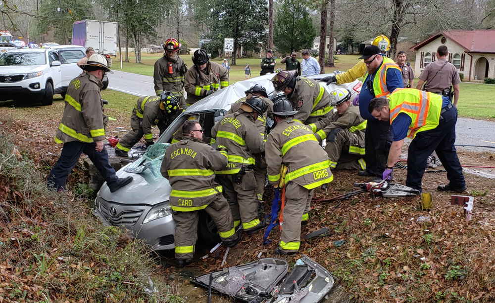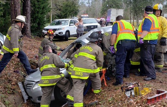The Florida Highway Patrol said Kelsey Burdeaux of Lillian, AL, pulled her Toyota Camry from a stop sign on 10 Mile Road into the path of a box truck driven by 36-year old Fredrick Powell of Mobile that was traveling north of Stefani Road.