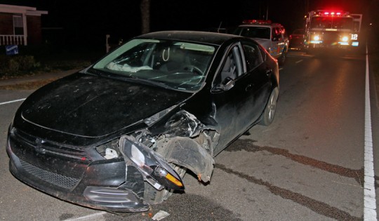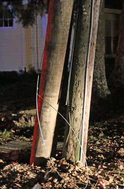 The force of the collision cause a power line to snap, leaving less than a dozen Gulf Power customer without power for several hours.