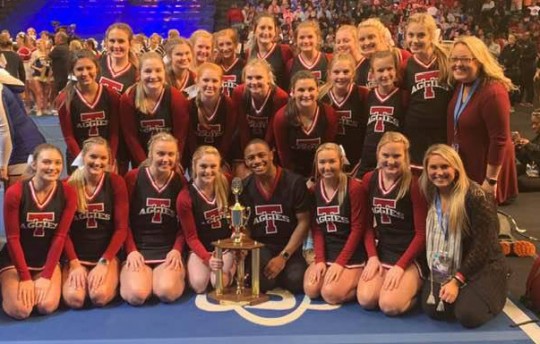 “I’m so proud of the work these athletes have put in this year,” White, who spent four years as an Aggie cheerleader, said after the state championship. “We’ve had many trials and hurdles they’ve had to endure, but their resiliency and love for their school continues to push these athletes forward. I feel incredibly blessed to be a part of the Tate High School cheer program.”