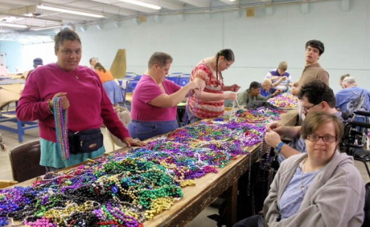Adults with intellectual and developmental disabilities sort and prepackage beads that are donated after parades. By collecting and selling bundles of beads, The Arc Gateway supports community efforts to recycle and reuse materials instead of generating waste. The program also generates revenues that help sustain Arc programs while providing vocational training and job opportunities for adults with developmental disabilities.
