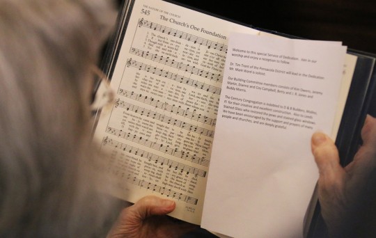 That was the first song from the congregation Sunday afternoon during a dedication service was for a Century church that was damaged beyond repair by a powerful EF-3 tornado in February 2016.