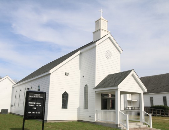 The Century United Methodist Church was built in 1902, just after Century was established by The Alger-Sullivan Lumber Company. It was constructed of virgin long leaf pine, with interior detail and finish that created a reverent place for worship.