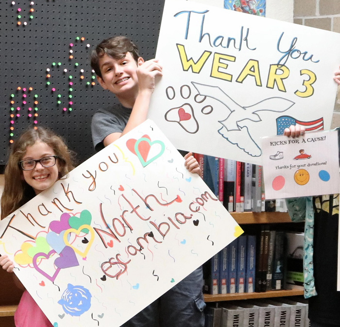 The students held a small event Friday morning to announce their results and to thank students and the community for the donations, and to thank WEAR 3 and NorthEscambia.com for supporting the shoe drive with media coverage.