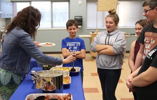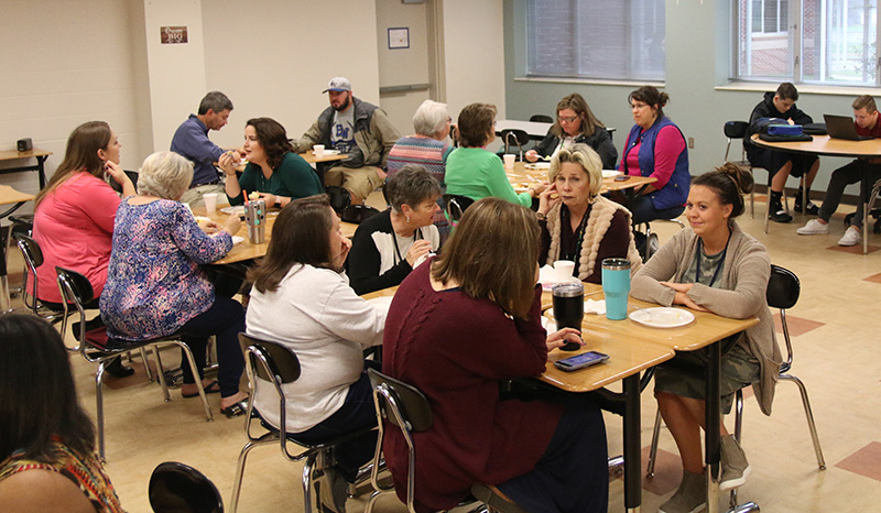Pictured: The Ernest Ward Middle School FFA Golden Cow Dung Award presentation to Phyllis Malone Wednesday morning Also pictured: The EWMS FFA Appreciation Breakfast. NorthEscambia.com photos, click to enlarge.