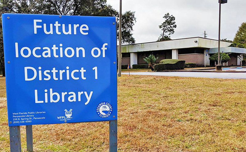 West Florida Public Libraries will design the new library this summer, which will be the first public library in District 1. The future site is at the former Wells Fargo Bank at 6425 Mobile Highway, across the street from Bellview Elementary and Middle schools. The location also serves as a transfer point for high school students being transported to specialty career path schools.