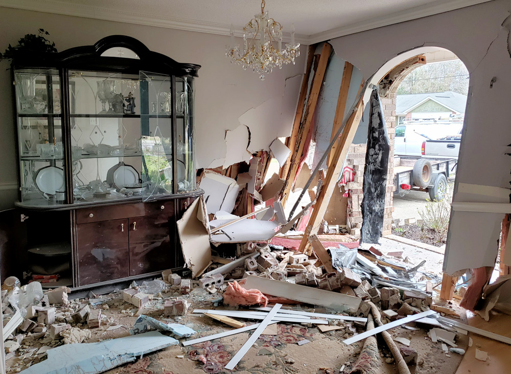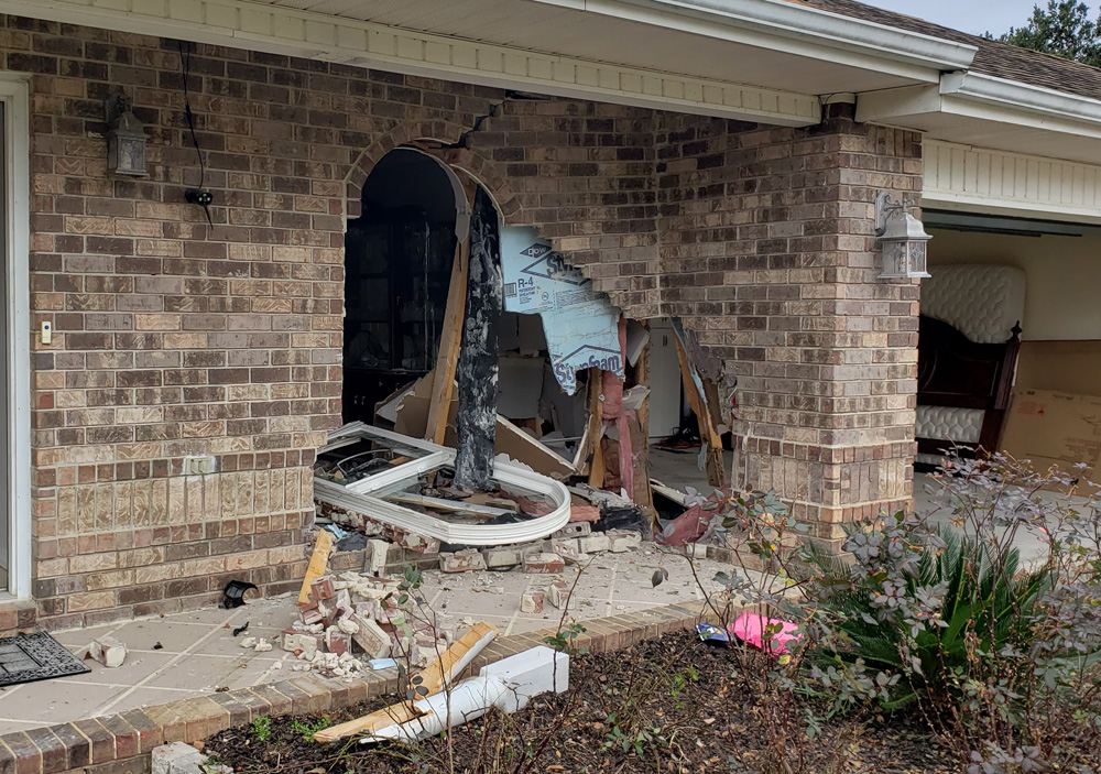 Also overnight, a suspect crashed a Nissan Altima into a brick home less than a mile away on Silver Ridge Drive. The vehicle traveled through the dining room and into an interior wall to the garage about 3:45 a.m. No one in the home was injured. The suspect fled on foot, according to Maj. Andrew Hobbs of the Escambia County Sheriff’s Office. He was described as a black male with dreadlocks wearing a white hoodie.