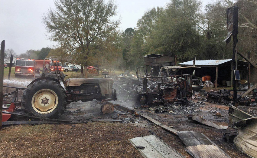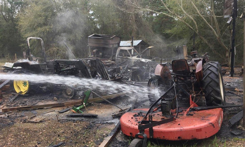 Fire Destroys Barn, RV, Two Tractors And A Truck