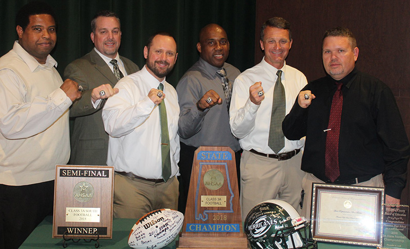 The Flomaton Hurricanes football team received their state championship rings Saturday night during a ceremony at the school.