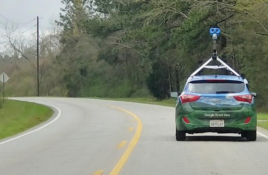 Notice the Google car has a California license place. They may not be using local people in each geographic area. Perhaps the camera system has to be installed over there so therefore they have to drive the camera car across the country. I don’t like the privacy issues of our homes being shown all over the world. As mentioned in a comment here, I have seen homes blocked out from all angles, so it is possible. The only advantage in residential areas is when researching real estate.