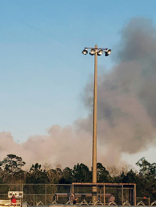 Pictured: A control burn on ECUA property as seen from the Cantonment Ballpark late Thursday afternoon. NorthEscambia.com photo by Kristi Barbour, click to enlarge.