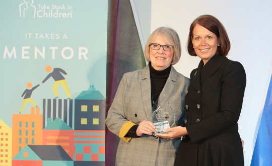 Jeanne Meyer, a 13-year mentor in Escambia County’s Take Stock in Children program, was chosen as the statewide Mentor of the Year and was honored at the recent Take Stock Leadership Summit in Tallahassee.