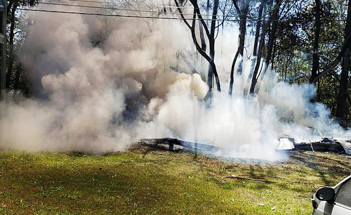Escambia Fire Rescue responded to the 9900 block of Rebel Road about 12:30 and found the sheds already on the ground.