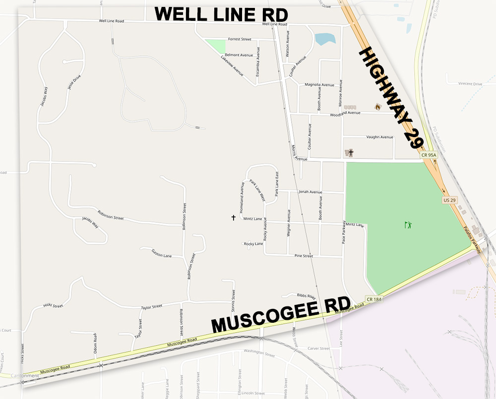 The smoke testing areas include Booker Street to Muscogee Road east to International Paper, and Muscogee Road to Well Line Road to Highway 29 (see maps).