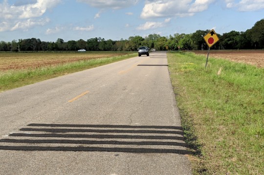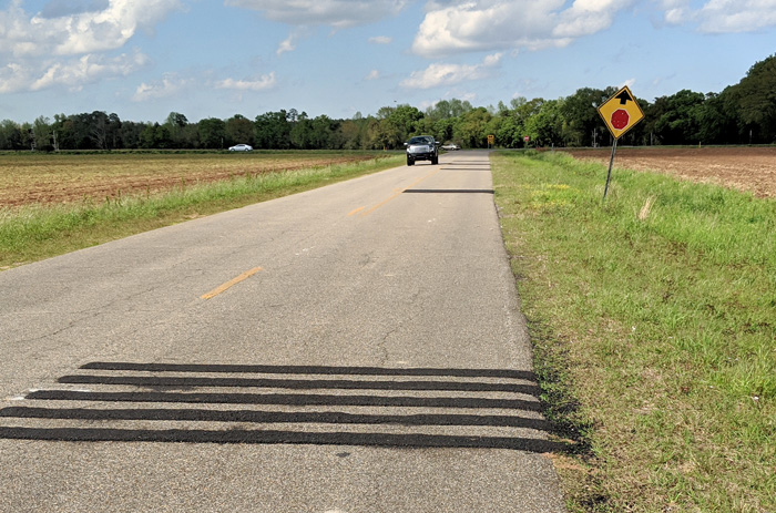 Escambia County (AL) crews recently installed rumble strips on Florida Highway to warn drivers of the upcoming intersection. There was already a stop ahead sign in place.