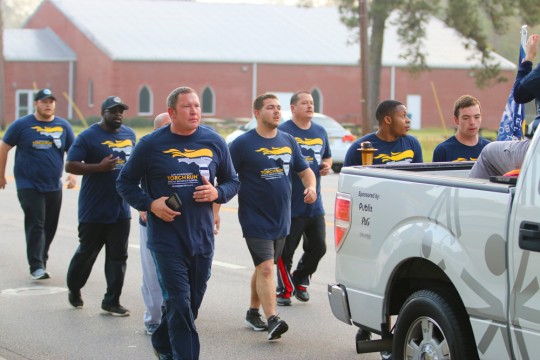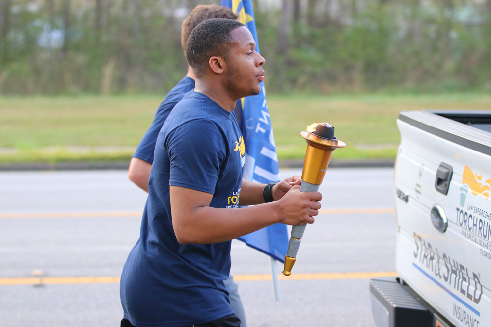 The torch run started at the Florida/Alabama state line Monday morning. Runners from Century Correctional Institution with an escort from Escambia County Sheriff’s Office carried the torch down Highway 29 to the Century Chamber of Commerce. An addition leg of the torch run Monday was set from the Escambia County Sheriff’s Office to Bartram Park.