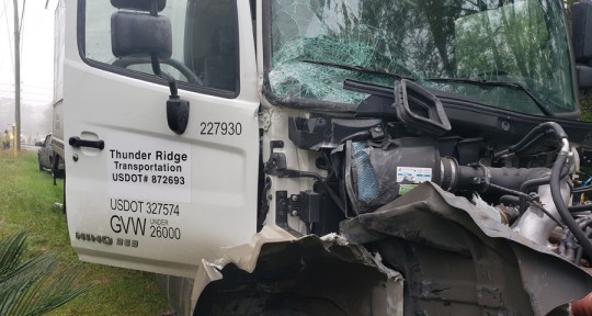 And L H. If you look at the pole and the ending position of the truck, you would see it was northbound on 95A. There is no stop sign there from that direction. It seems that someone (which happens quite a bit) pulled out in to cross going westbound on molino rd, heading for Hwy 29. Lets see what they find out.