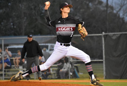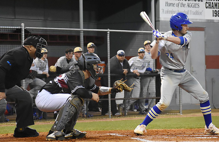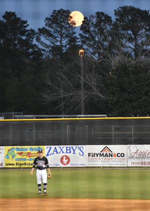 The Aggies defeated Noble, OK, 3-1 Wednesday night under a rising outfield supermoon (pictured left).