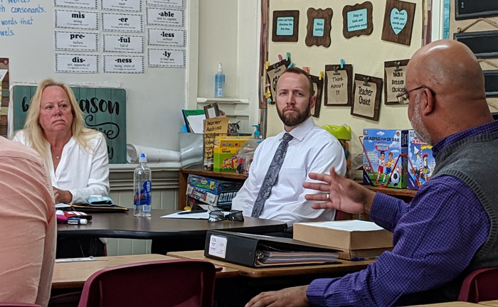 Pictured top: Byrneville Elementary School board of directors members Cheryl Boutwell and Jeremy Hawsey listen to a presentation from United Bank Vice President Chris Walker. NorthEscambia.com photos, click to enlarge.