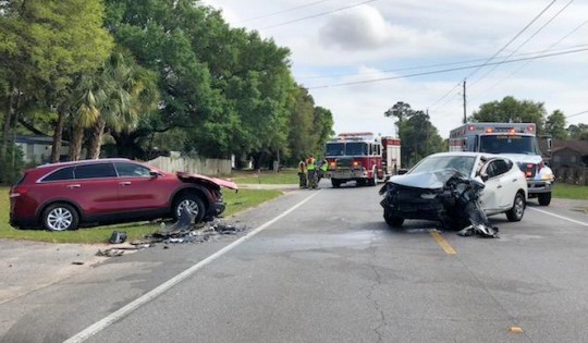 The crash happened about 3:10 p.m. on Pine Forest Road near Amanda Lane, about a mile north of Nine Mile Road. The roadway was complete blocked by the crash.