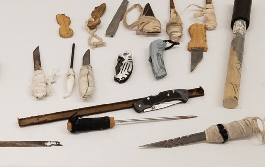 I get the home made weapons, but I see 2 flip knives in the photos…. unreal and very unacceptable. And it is just as bad here in Florida, and now we want to allow 18 year olds to come in a work?? The situation will only get worse until the right people step in and make right choices. The inmates have way too much freedom, even locked up. Tighten up Alabama and Florida, and get a grip on the Corrections Departments.
