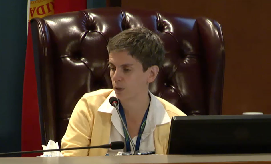Pictured: Interim Escambia County Administrator Amy Lovoy during a county commission meeting last week.