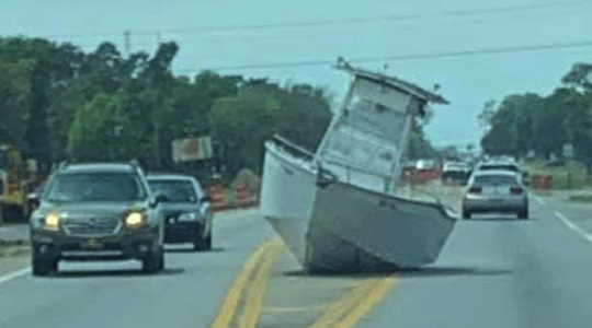 I literally saw a man driving a car with a boat body at Nine Mile and Pine Forest!!! Saw the headlines and thought “hey that must be it!” boy was I wrong XD