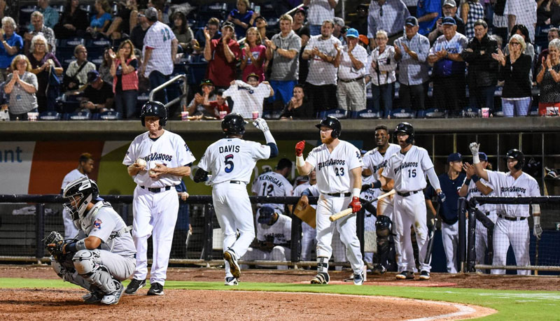 The Blue Wahoos answered in the bottom half of the inning with their third home run of the game, a solo shot to left by Jaylin Davis.