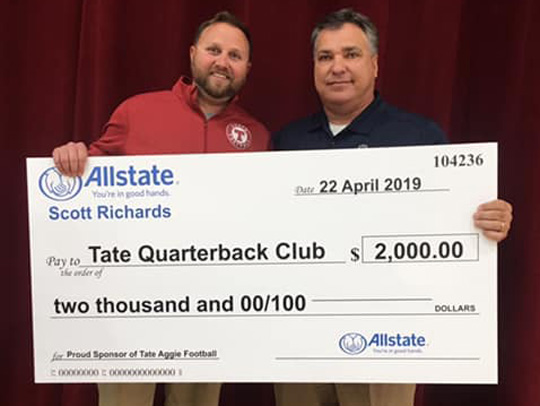 Allstate Agent Scott Richards Presents $2,000 Donation To Tate QB Club