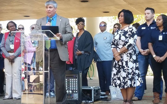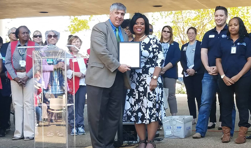 Pensacola Mayor Grover Robinson was joined Tuesday by Escambia County Commissioner Robert Bender, Century Mayor Henry Hawkins and WEAR’s Sue Straughn in declaring April 2 as National Service Recognition Day. Volunteers were recognized for their contributions to the community.