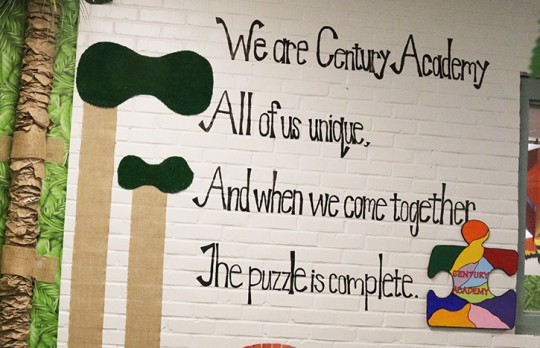 Century Academy had an official motto stenciled on a wall just inside the front door — “We are Century Academy. All of us are unique. And when we come together, The puzzle is complete.”
